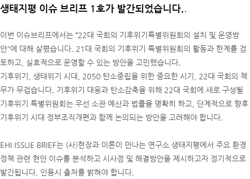 [생태지평 이슈 브리프] 22대 국회의 기후위기특별위원회의 설치 및 운영방안