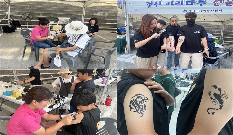 ‘제9회 정선 강변가요제’가 지난 8월 8일부터 9일까지 이틀간 정선 조양강변 둔치 특설무대에서 성황리에 개최되었습니다. 지역 주민과 관광객이 함께 어우러지는 여름 음악 축제로, 다양한 공연과 체험 행사, 이벤트 등 풍성한 프로그램이 마련돼 큰 호응을 얻었으며, 특히 행사 기간 동안 정선군자원봉사센터 아리타투를 통해 지역주민 및 관광객분들에게 타투체험을 할수 있도록 지원하였습니다.