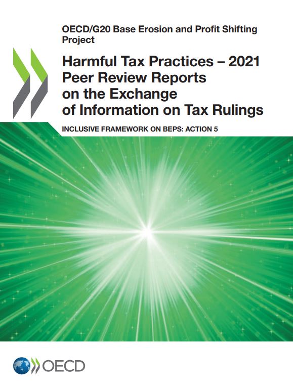 OECD는 유해조세경쟁 방지를 위해 도입한 BEPS 액션5에 대해 각 국의 이행상황을 평가한 보고서를 발간하였다. OECD는 국가가 자본유치를 위해 세율을 지나치게 인하하는 등 지나친 조세경쟁이 결국 각 국의 재정기반을 잠식하고 자본이동을 왜곡한다는 판단하에 다양한 방지방안을 마련하였다. 그 방안 중 하나로 각 국이 특정 납세자에게 조세혜택을 주는 예규를 국가간 상호교환하기로 하였으며, 동 보고서는 그 이행상황을 평가하는 것이다. 그 평가 결과, 2021년 기준으로 131개국 중 73개국이 평가기준을 충족하였으며, 한국도 평가기준을 모두 만족하였을 뿐만 아니라 정보교환에 대한 법적제도가 마련되어 있고 실질적으로도 정보교환에 있어 장애요소가 없다고 평가받는 등 긍정적인 평가를 받았다...