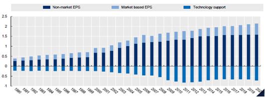 < 환경정책강도지수 및 기술 지원(1990-2020) >