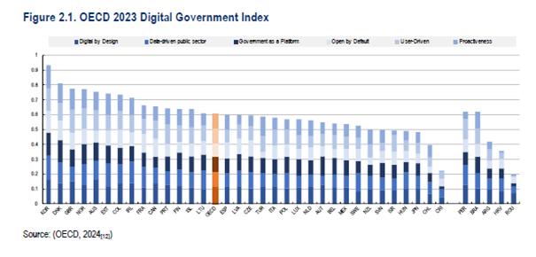 한국 디지털정부 리뷰(Digital Government Review of Korea: Harnessing Digital and Data to Transform Government) 보고서에 따르면 한국 정부는 지난 수십 년간 공공부문 디지털 전환에 있어서 눈에 띄는 진전을 이루었으며, 이를 바탕으로 정부 개혁과 공공서비스 혁신을 성공적으로 이루어 온 국가 중 하나이다. 보고서는 그간 한국 정부가 만들어 낸 성과를 OECD의 디지털 정부 관련 권고와 OECD 디지털 정부 정책 프레임워크 등을 기반으로 평가하고, 권고 사항을 제시하기 위하여 마련되었다. 동 보고서는 ① 디지털 정부를 위한 거버넌스·투자·역량 강화, ② 데이터 거버넌스·공유·활용 개선, ③ AI를 통한 정부 혁신 추진, ④ 인간 중심적이고 선제적인 공공서비스 제공 등의 4가지 핵심영역을 중심으로 구성되어 있다.