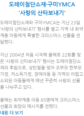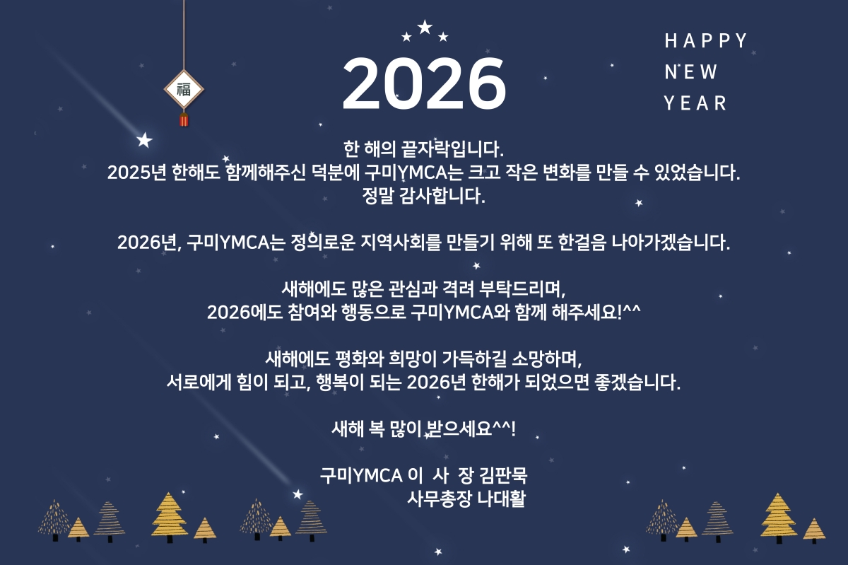 구미YMCA도 올 한해 열심히 달려왔습니다! 구미YMCA는 2025년 한해를 어떻게 마무리하고 있을까요? 2025년도 마지막 뉴스레터를 지금 바로 만나보세요!